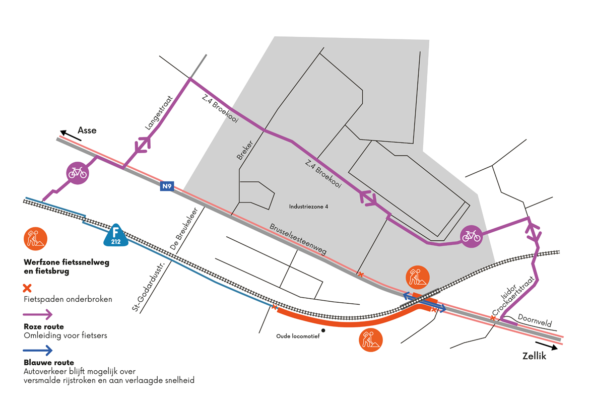 Fietssnelweg F212 wordt tijdelijk afgesloten vanaf maandag 19 januari 2026 tussen de oude locomotief en de Brusselsesteenweg (N9).